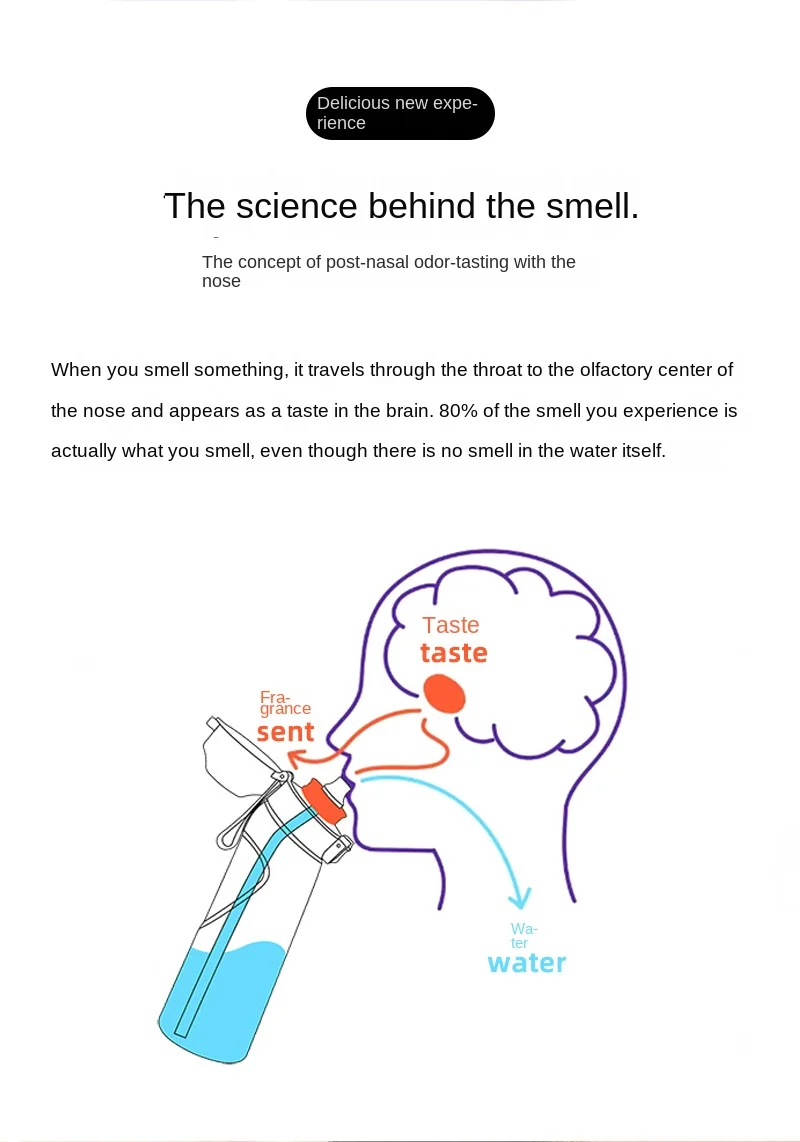 【Loss Weight & Hydration】Air water bottles use flavour to stimulate your sense of smell, creating the illusion of taste, so you can drink more water to reach your fitness goals. Experience taste without guilt and safeguard your healthy life.